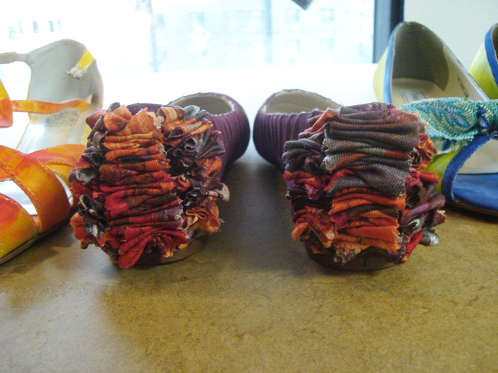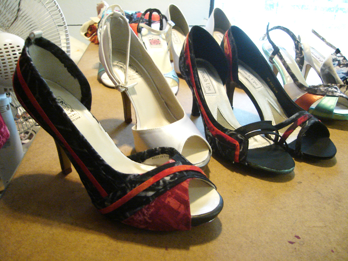 Annika Benitz along with a packed audience witnessed her maternity wear walk down the runway on May 7, 2011. The venue for Massachusetts College of Art and Design’s Senior Collection Fashion Show, Voltage 2011, was held in the open-air Power Station in South Boston. The exposed brick paired nicely with the warmth of the flooding light from the runway. It was thrilling to see everyone’s hard work and care for their collections over the past year. Below is an opportunity to see what came before Annika’s vibrant solutions to shoes from DesignerShoes.com for the expectant mother, as well as the final results!